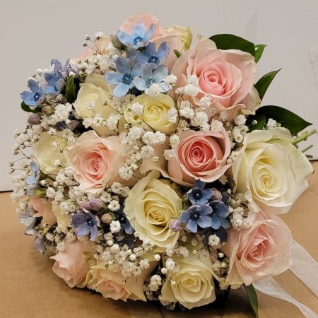 זר כלה ורדים וטווידה תכלת זר כלה ייחודי ויפה